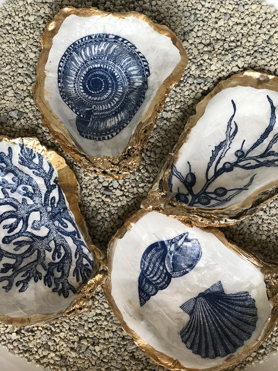 Decoupaged Painted Oyster Shell Ring Dish Oyster Shell Salt Etsy Canada